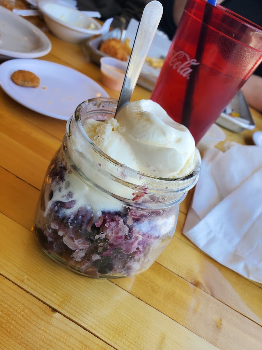 What a nice place, so pleasantly surprised. The atmosphere is relaxing, and the staff is friendly and helpful. Hubby and I shared a village burger and a BLT. Both were excellent- made even better by the fried green tomatoes!! Don't miss those! Don't get any dessert, but I plan on coming back and will get the cobbler next time!
